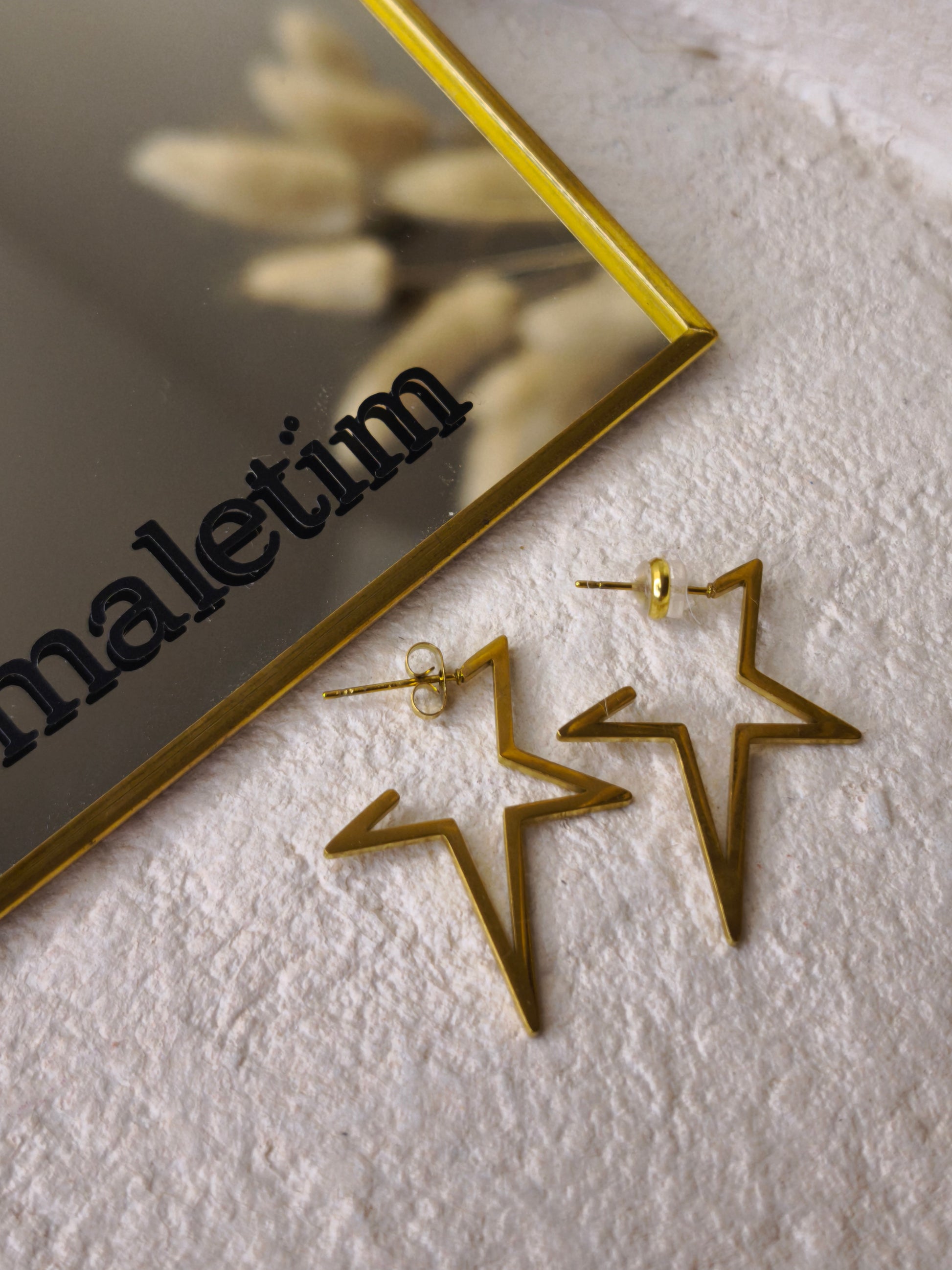 En acier inoxydable doré, ces boucles d’oreilles en forme d’étoiles (3,5 x 2,5 cm) apportent une touche lumineuse et audacieuse à votre style. Leur design graphique et élégant capte la lumière à chaque mouvement, pour un éclat subtil de jour comme de nuit.